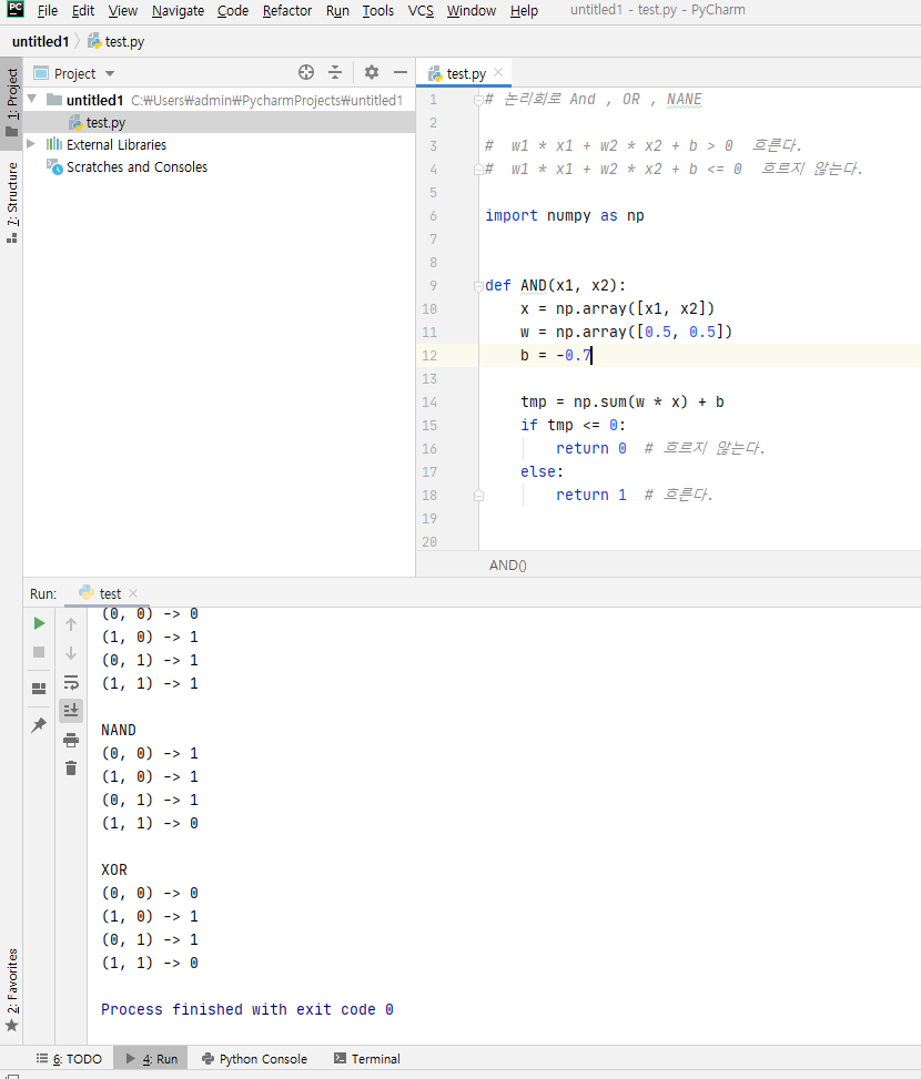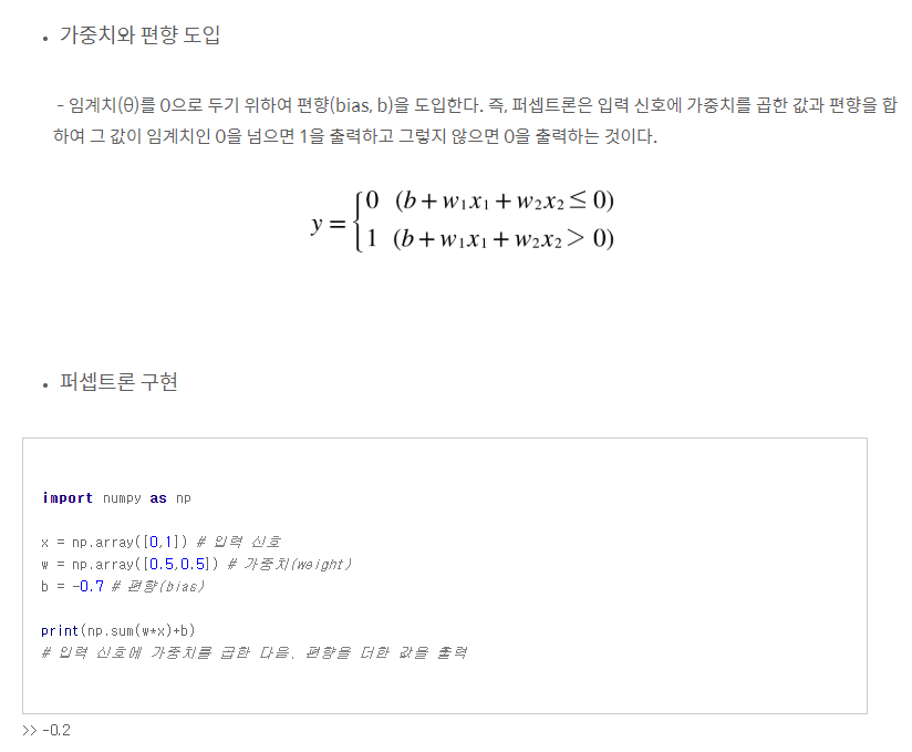 # w1 * x1 + w2 * x2 + b > 0 흐른다.