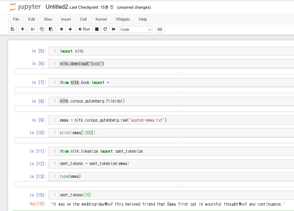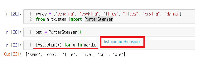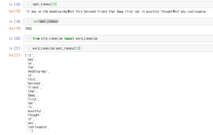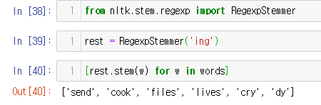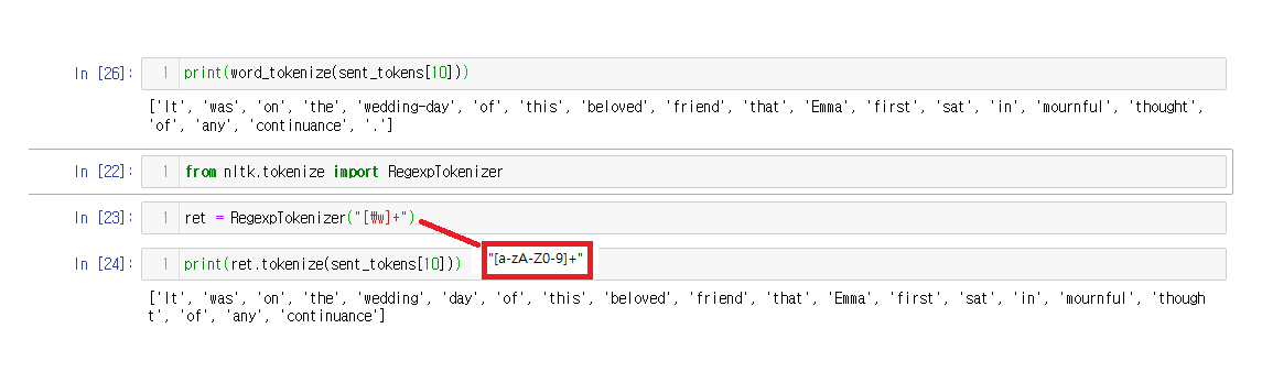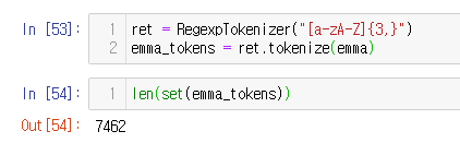 ret = RegexpTokenizer("[\w]+") // 영문자 숫자에 해당하는 것만 토큰으로 만듬