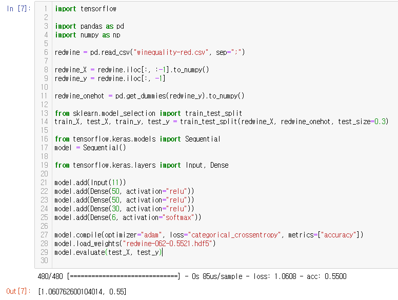 model.evaluate(test_X, test_y) # compile 해야 사용할 수 있음