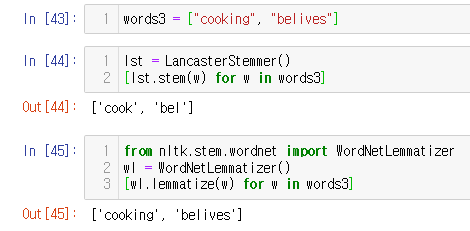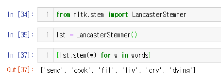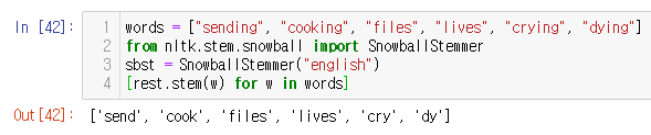 - 형태소 분석(morphological analysis): 어근 분석, 명사