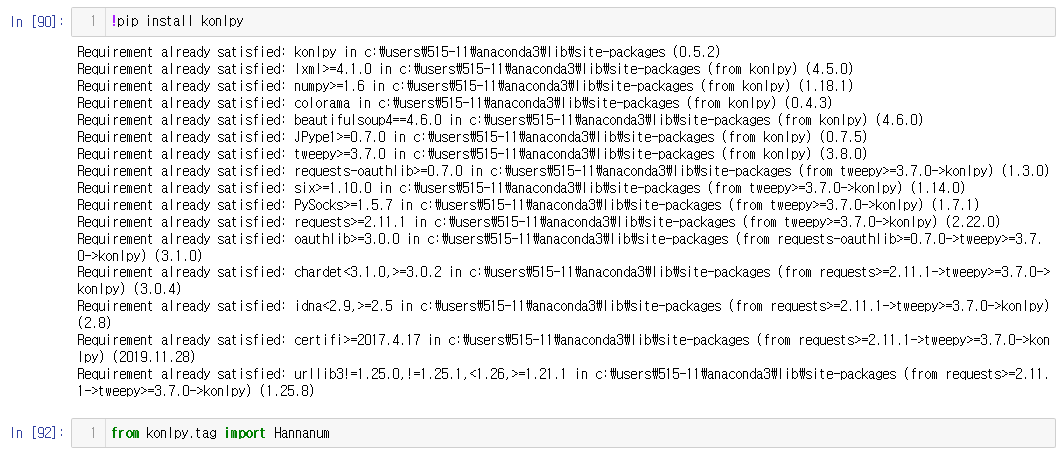 - KoNLP: KoNLPy는 JPype1 패키지에 의존