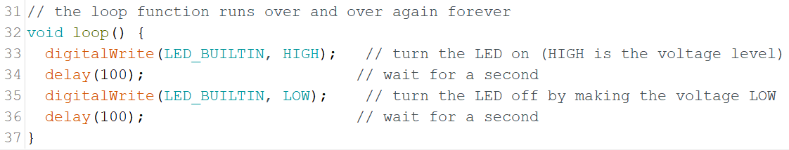 digitalWrite(LED_BUILTIN, LOW); // turn the LED off by making the voltage LOW
