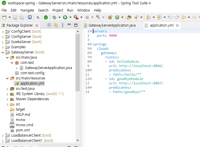 Gateway Server http://localhost:9000/hello or goodbye