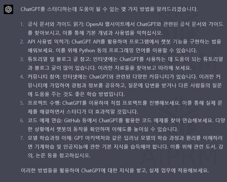 이러한 방법들을 활용하여 ChatGPT에 대한 지식을 쌓고, 실제 업무에 적용해보세요.