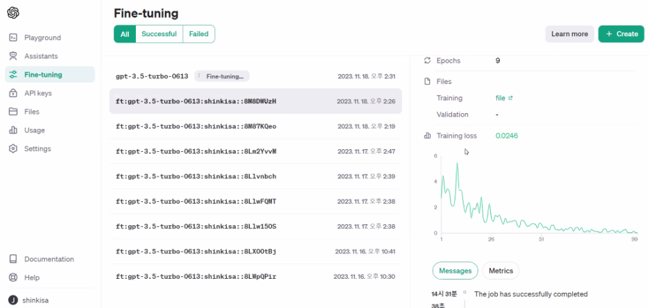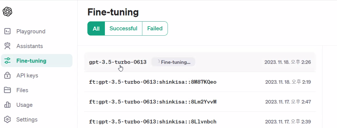 # Fine-tuning 작업 상태 확인