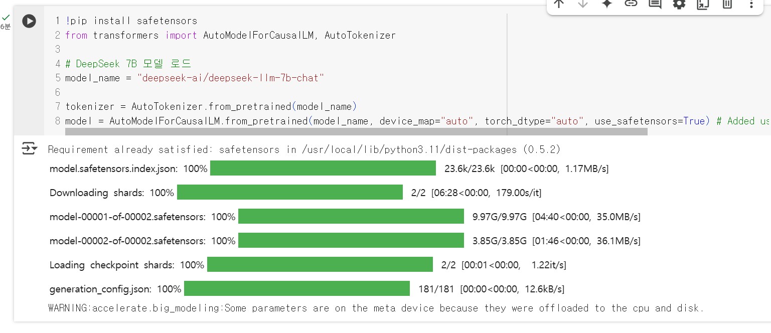 그 후, DeepSeek-LLM 7B 모델을 다운로드합니다.