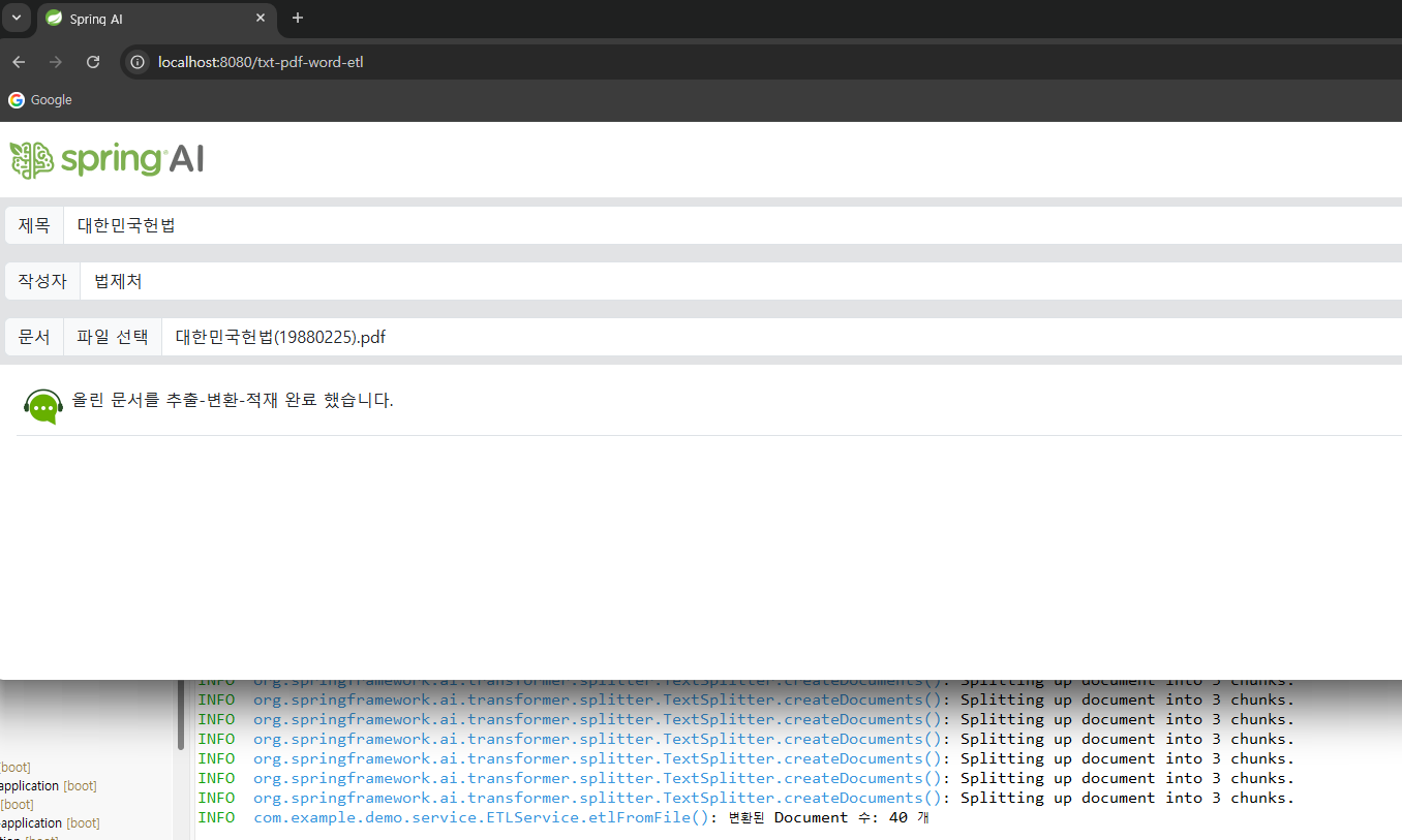 log.info("변환된 Document 수: {} 개", transformedDocuments.size());