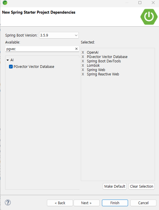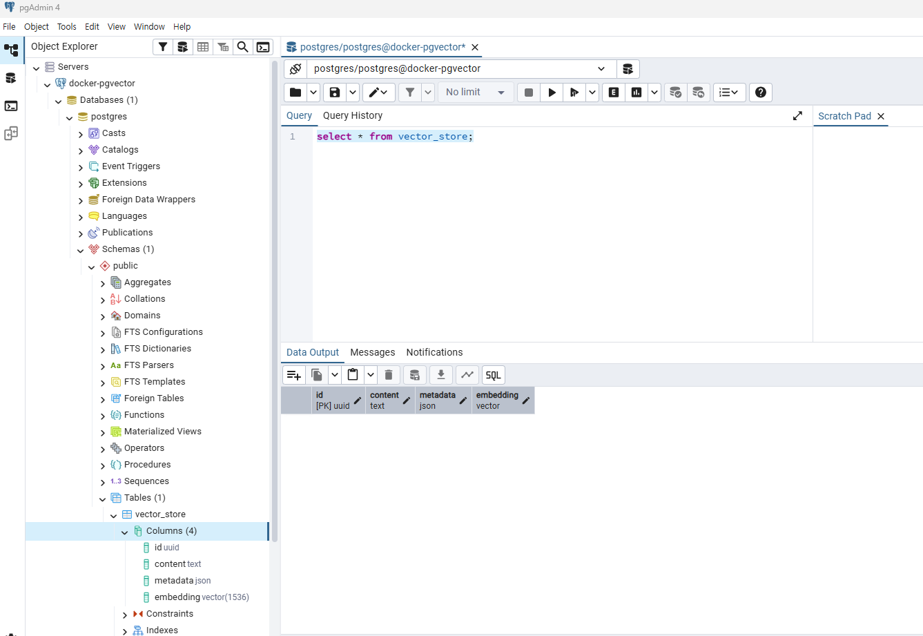 Some vector stores require their backend schema to be initialized before usage. It will not be initialized for you by default. You must opt-in, by passing a boolean for the appropriate constructor argument or, if using Spring Boot, setting the appropriate
