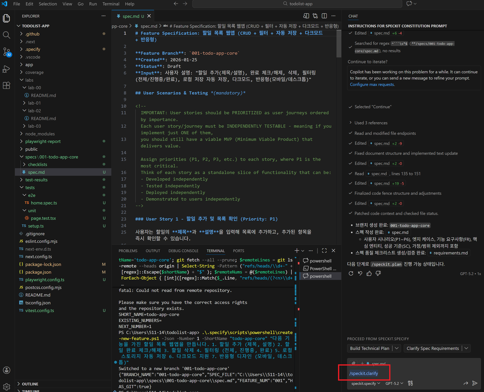 /speckit.specify → 요구사항/스펙 정의