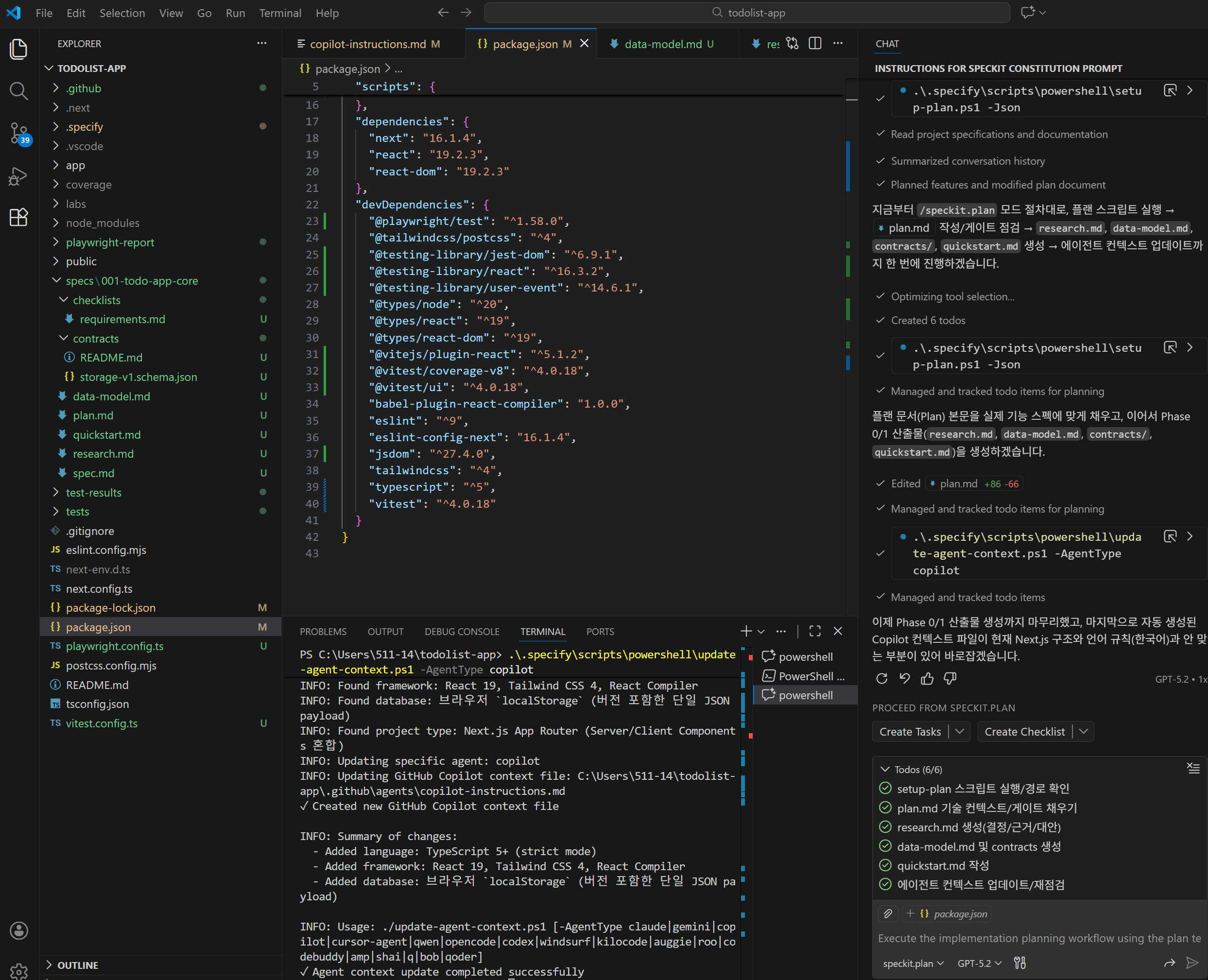 기술 구현 계획 작성 → /speckit.plan
