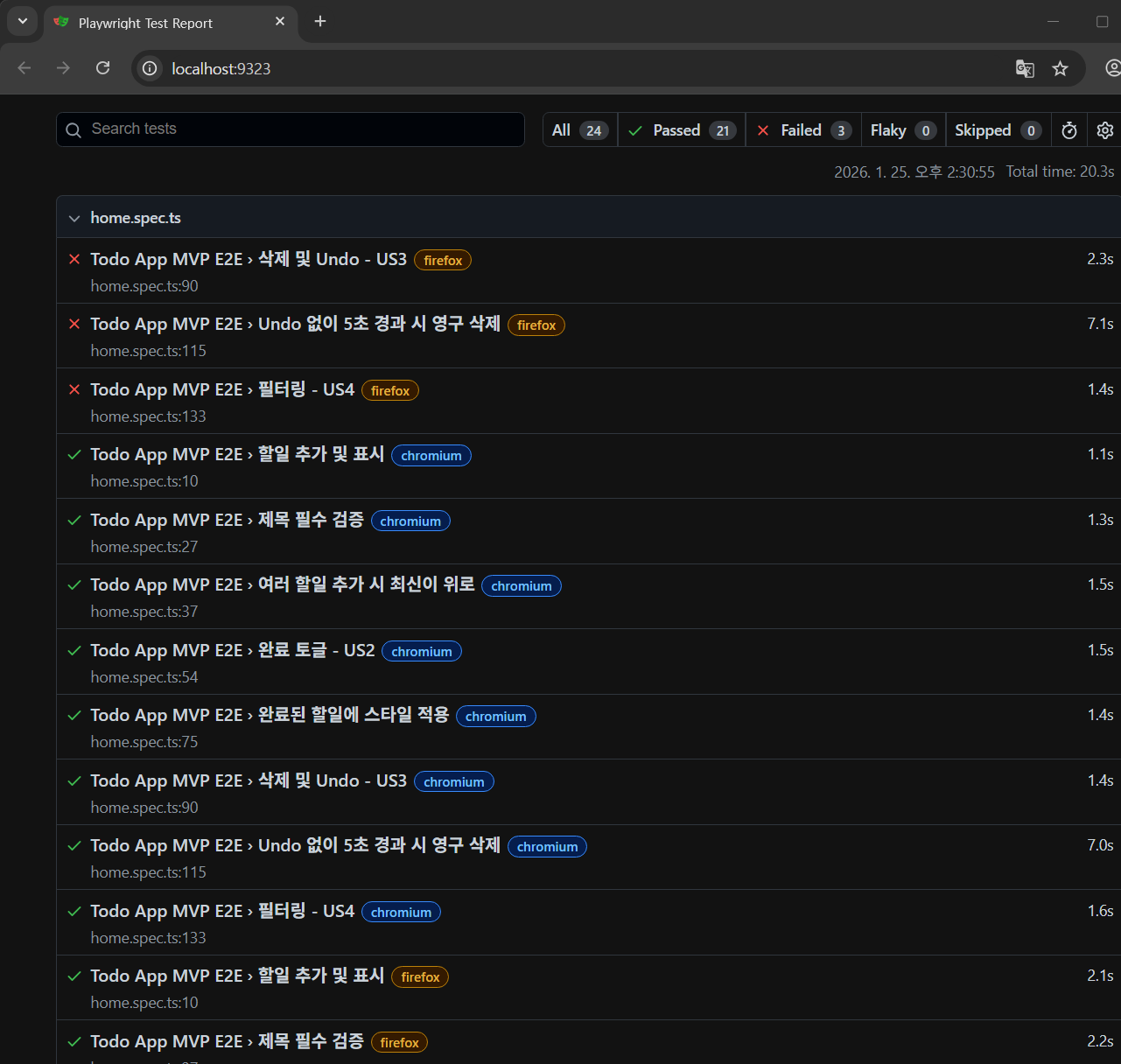 ✅ 33개 시나리오 전부 통과 (3개 브라우저)