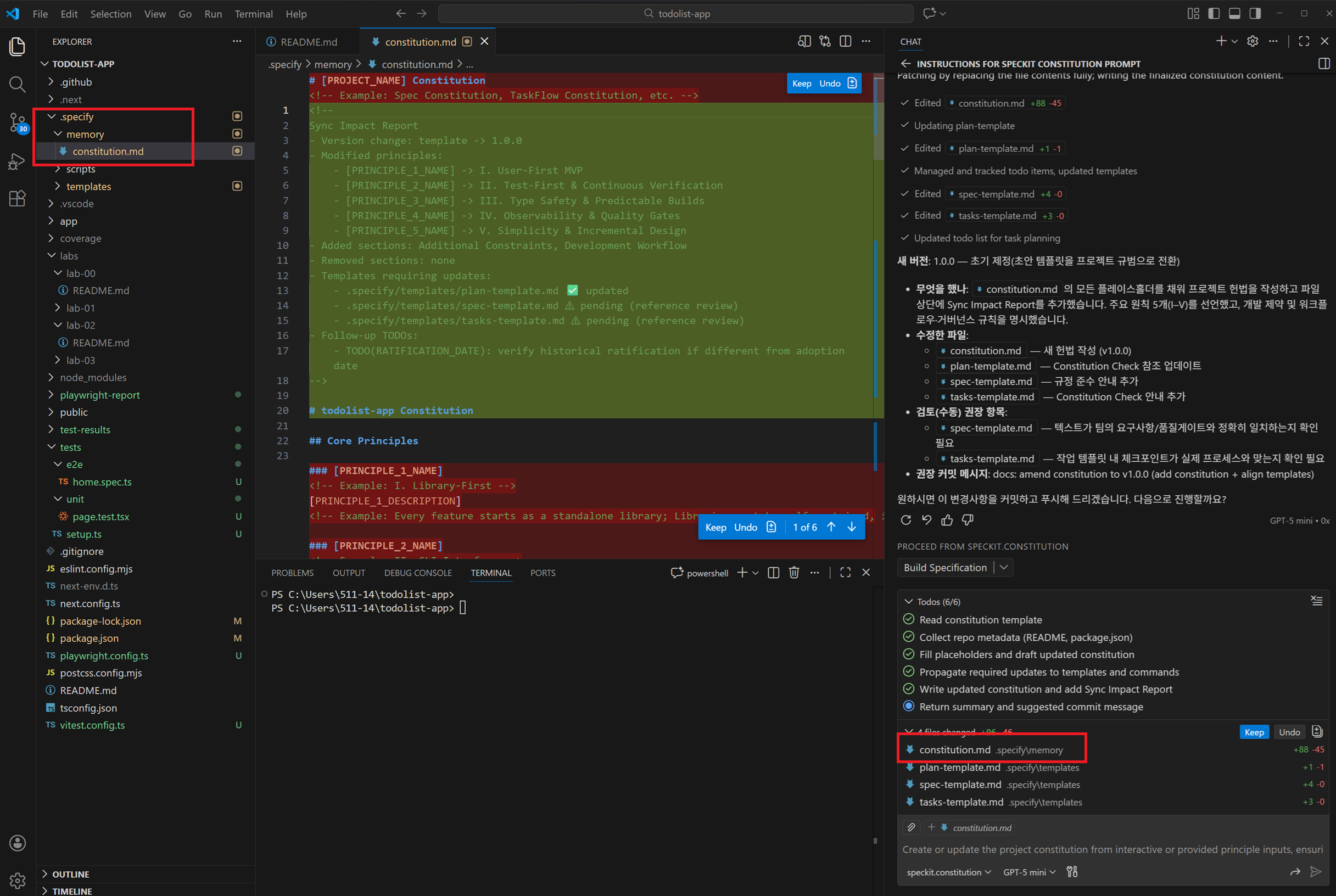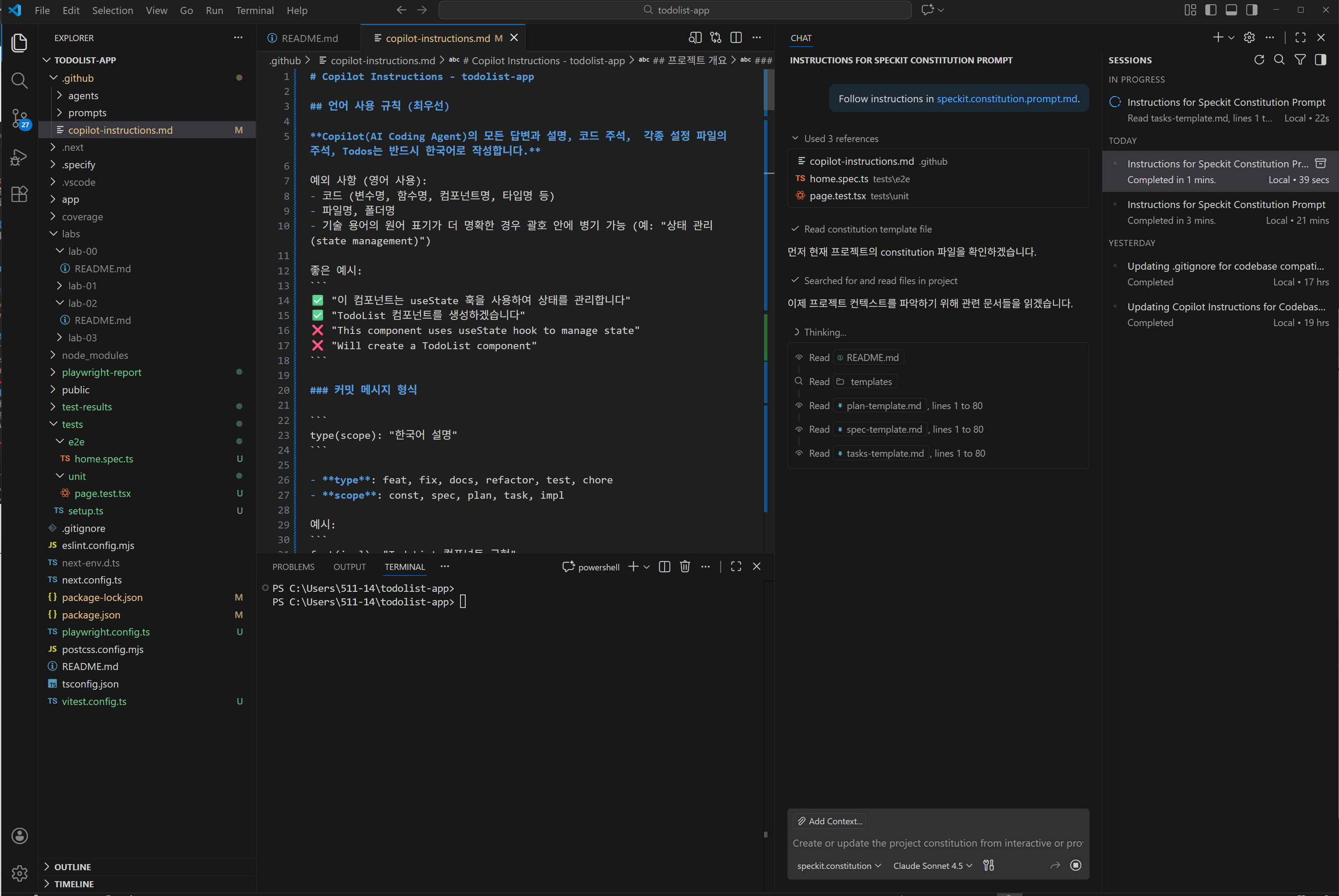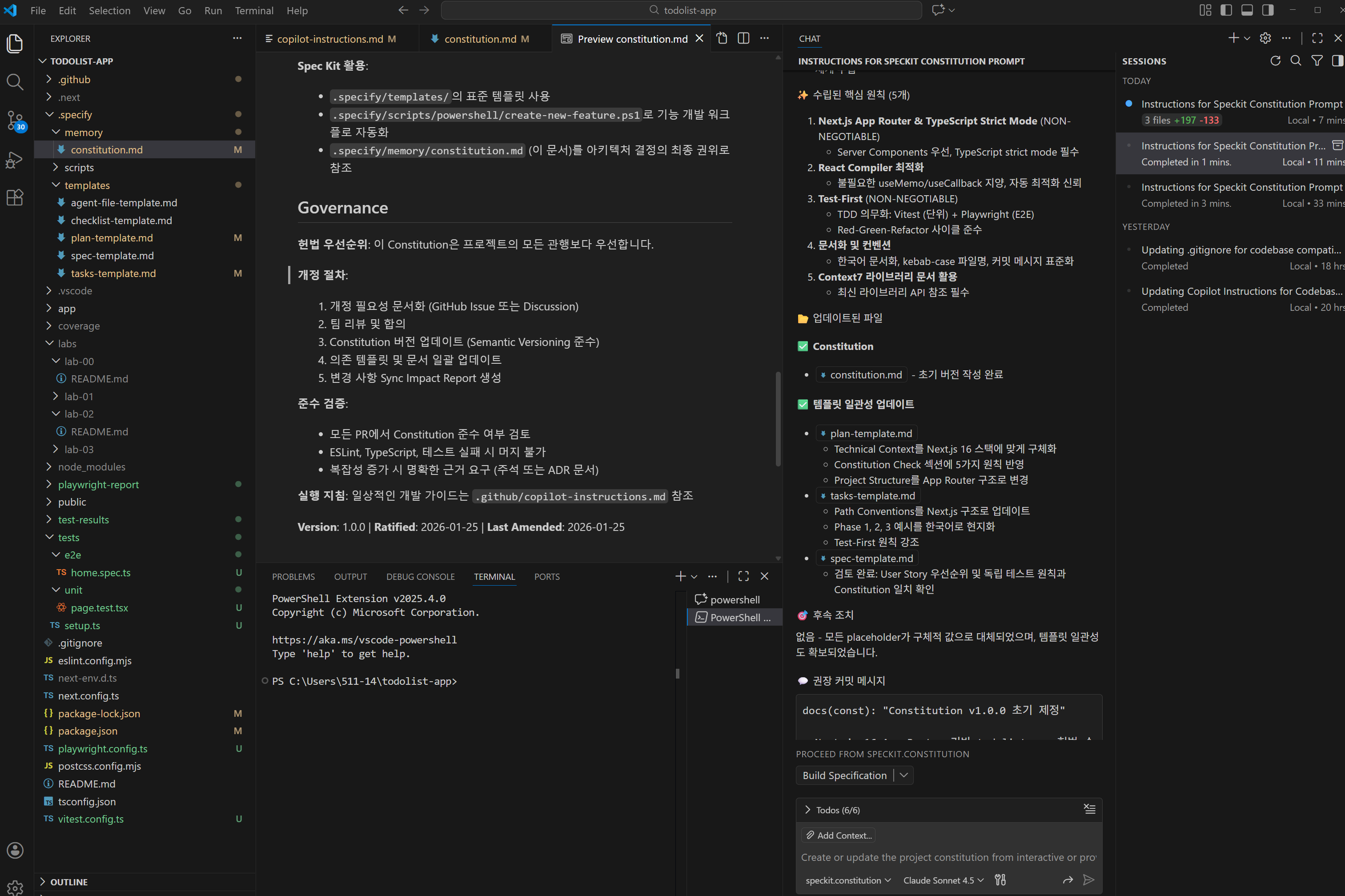 /speckit.constitution → 프로젝트 원칙 수립